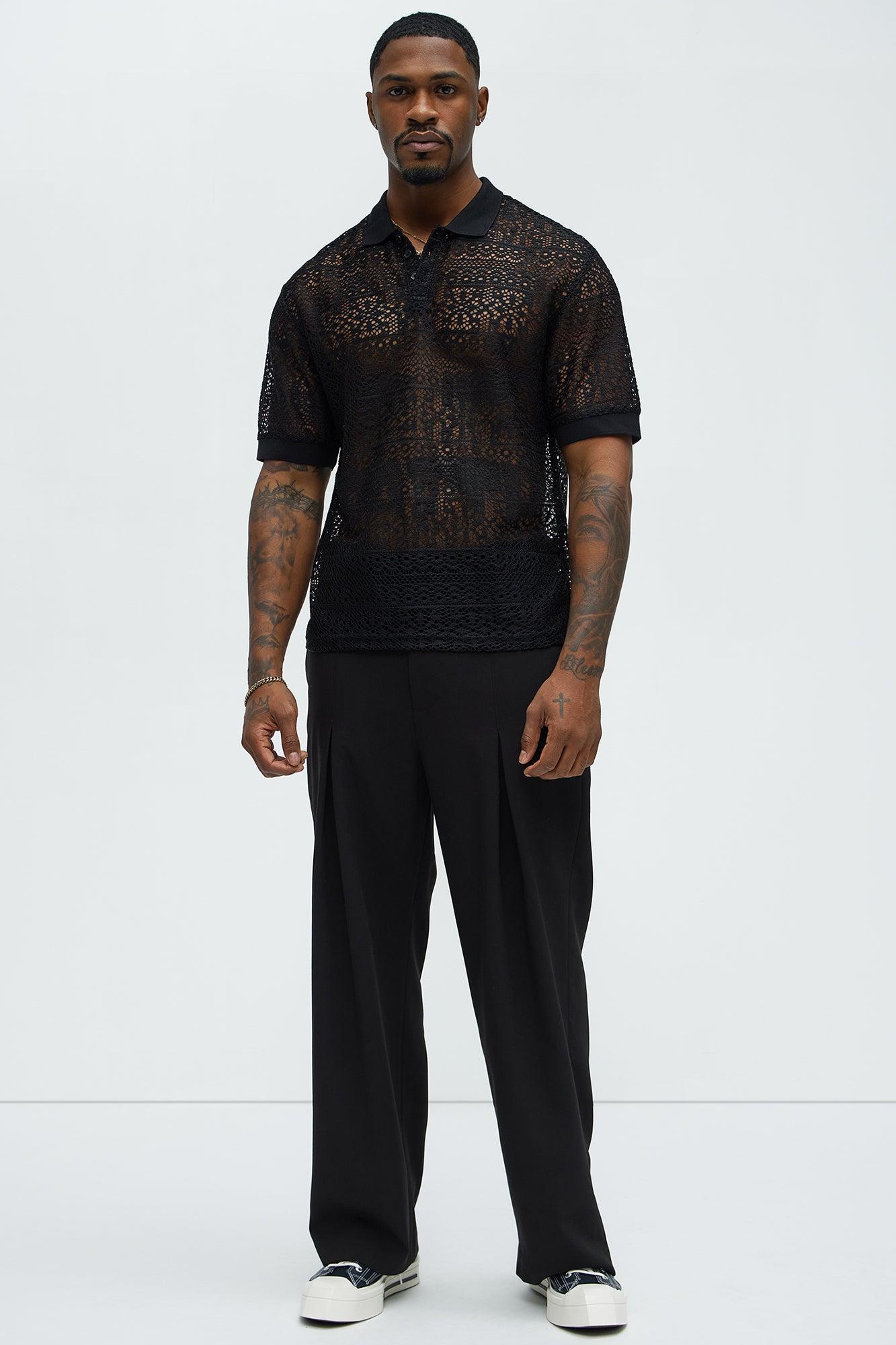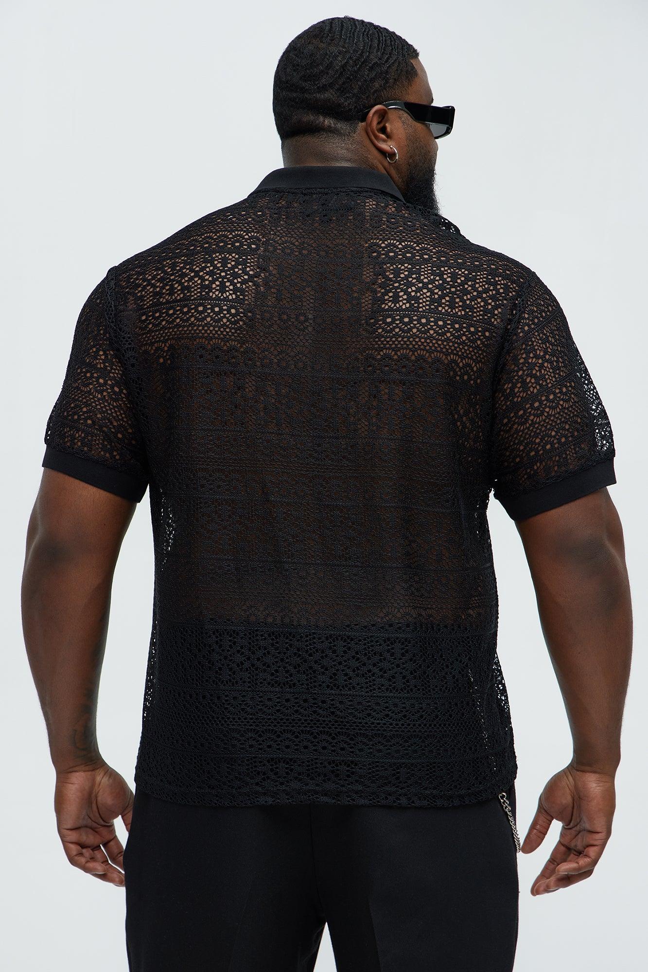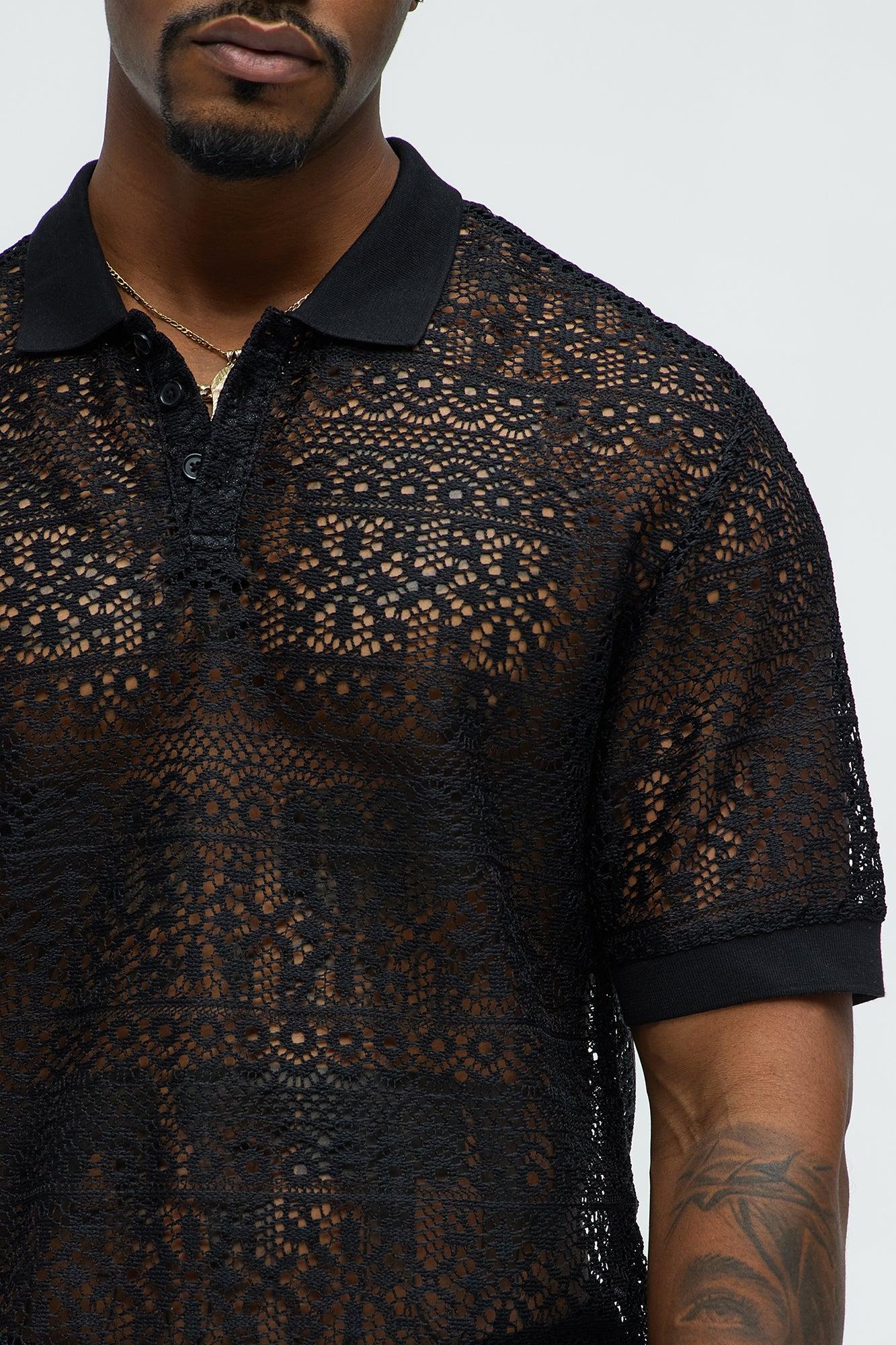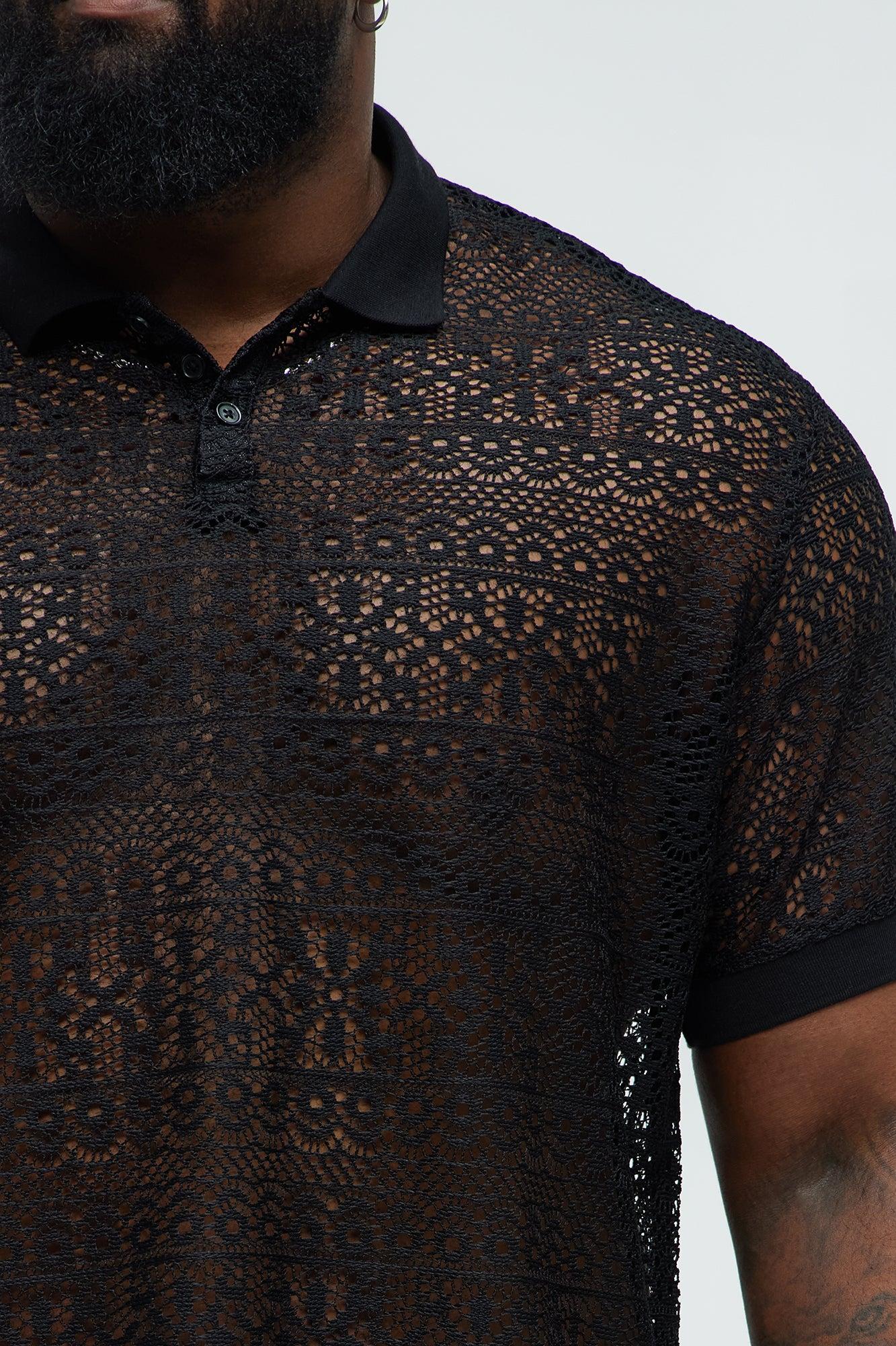 Available In Black. Button Down Collar Ribbed Collar Textured Short Sleeve Ribbed Cuff Crochet 100% Polyester Disclaimer: This garment has been made with delicate materials and may snag or pull if jewelry or watches are worn. Do not wash with items that may cause snagging such as zippers or hooks. This garment is unique and must be handled with care. Imported California Proposition 65 WARNING: Cancer and Reproductive Harm - www.P65Warnings.ca.gov.