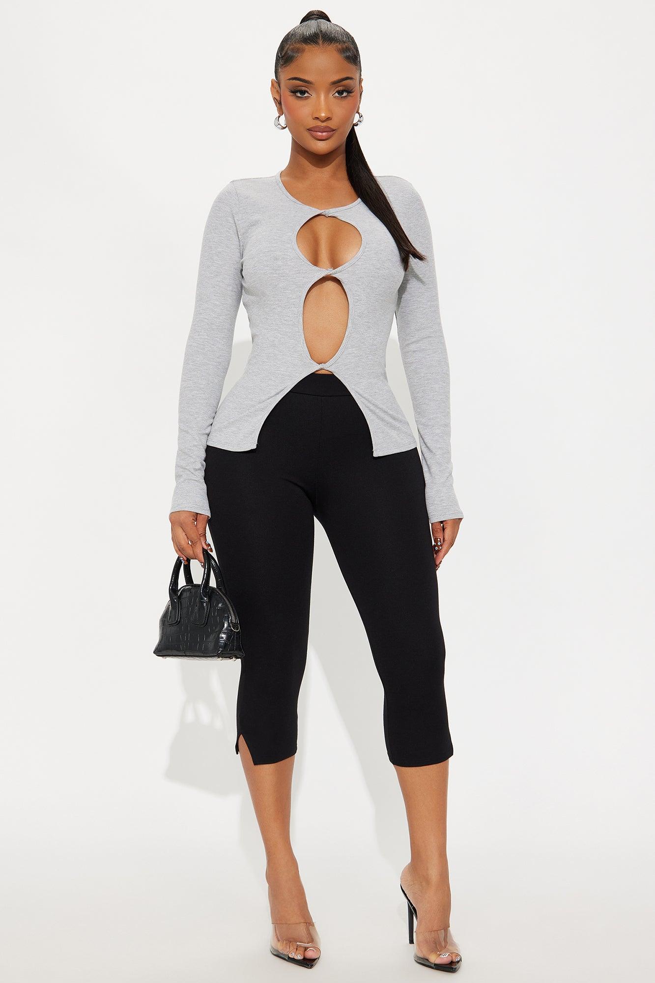 Effie Ribbed Cut Out Top - Heather Grey Female