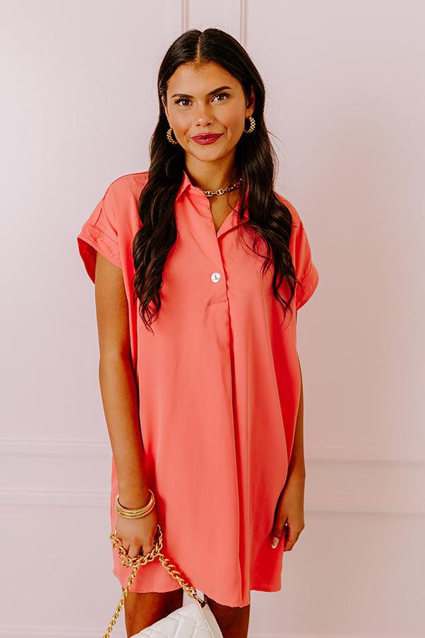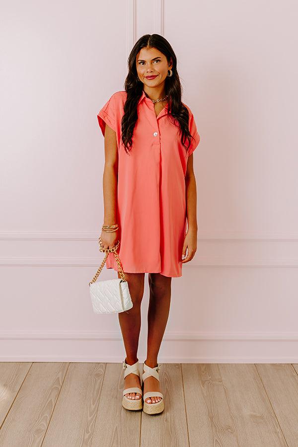 - This shift dress will keep you looking effortlessly radiant! - Fully lined sleek material - A collared v-cut neckline a sing button for additional coverage - A front pleat accent - Short sleeves with cuffs - A relaxed silhouette that ends in a straight mid-thigh length hemline
