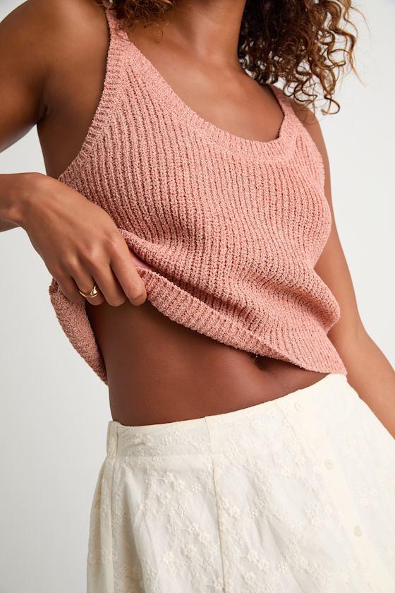 Head out into any summer day feeling cute as can be in the Lulus Effortless Sunshine Dusty Pink Sweater Tank Top! Lightweight sweater knit shapes this must-have top, which falls from classic tank straps into a scoop neckline and a blousy bodice. Contrasting ribbed knit shapes the neckline, straps, and hem.