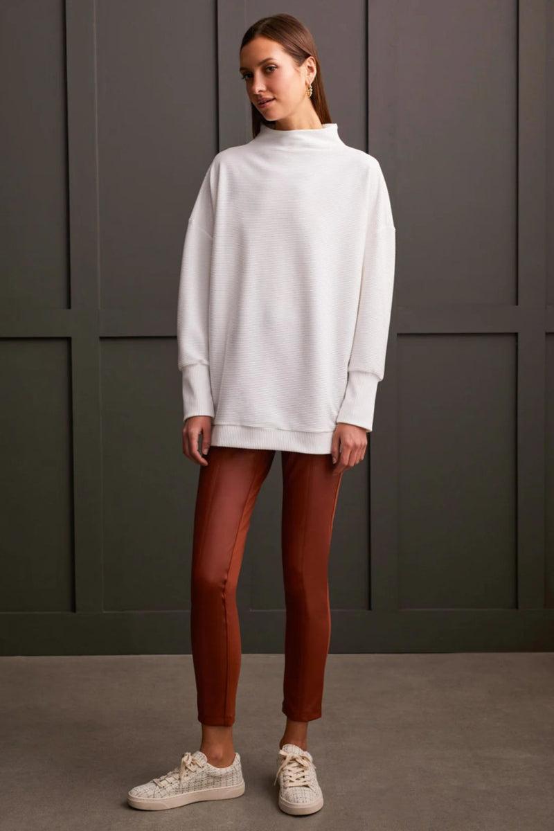 Tribal - enjoy life's adventures in comfort & style! This eggshell funnel neck tunic features a funnel neck, drop shoulder long sleeves, a wide band at hem and extra long cuffs. Embrace chilly days with luxurious comfort in this funnel neck tunic, crafted from mini Ottoman knit fabric that's brushed for extra softn