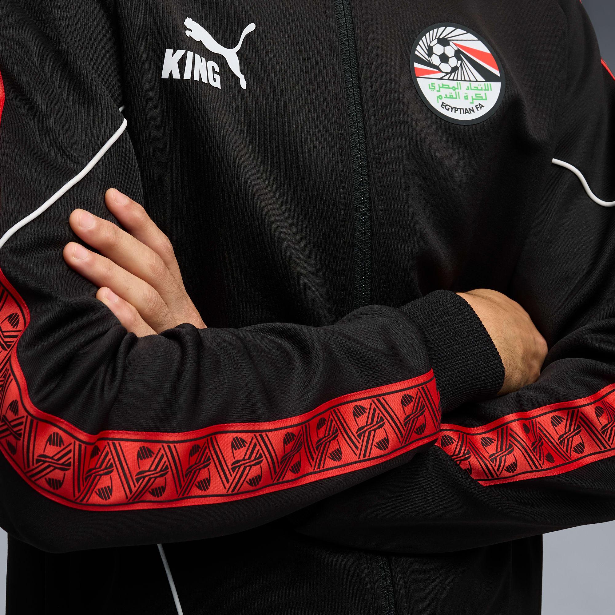 descriptionThe KING Anthem Collection channels retro vibes with a modern twist, worn by players during their walkouts before every game. With bold, vintage-inspired designs, this Egypt jacket honours your club’s legacy while showcasing your pride, making it a true symbol of loyalty and tradition.Style: 784945_06Color: PUMA Black-PUMA Redmeasure & sizeModel informationModel is 6' 1" tall and is wearing size M.features & benefitsMOISTURE MANAGEMENT: Technical dryCELL fabrics wick moisture away from the skin to help keep you dry and comfortableMade with at least 50% recycled materials.detailsFit: SlimMain material type: SpacerNeck: Stand-up collarLong sleevesClosure: Full zipOfficial team branding detailsmaterials & careMaterial informationPocket Bag: 100% PolyesterRib: 93% Polyester, 7% ElastaneTrimming: 100% PolyesterShell: 63% Polyester, 37% CottonCare instructionsClose all fasteningsDo not iron printWash with similar coloursExclusive of DecorationUse only mild detergentWash garment in a washing bagWash and iron inside out