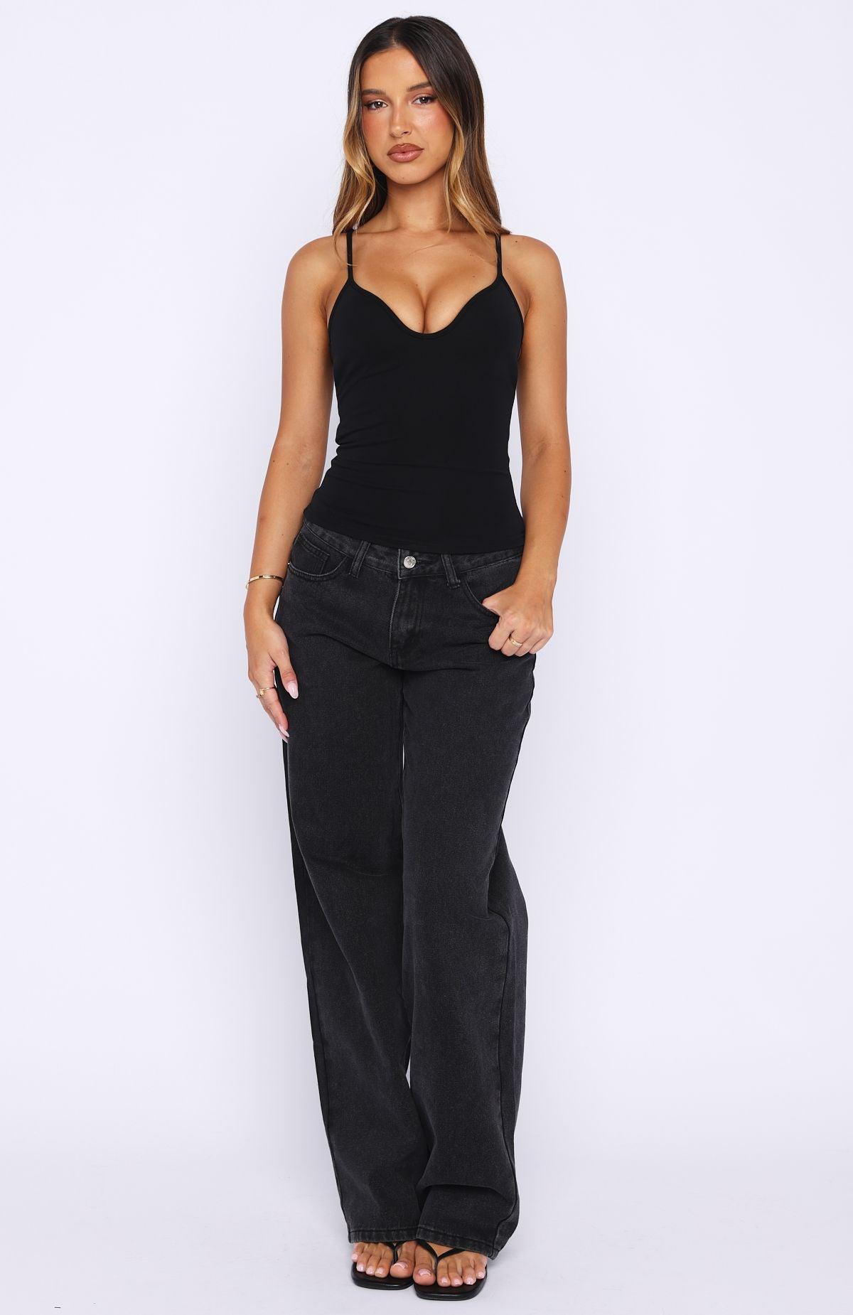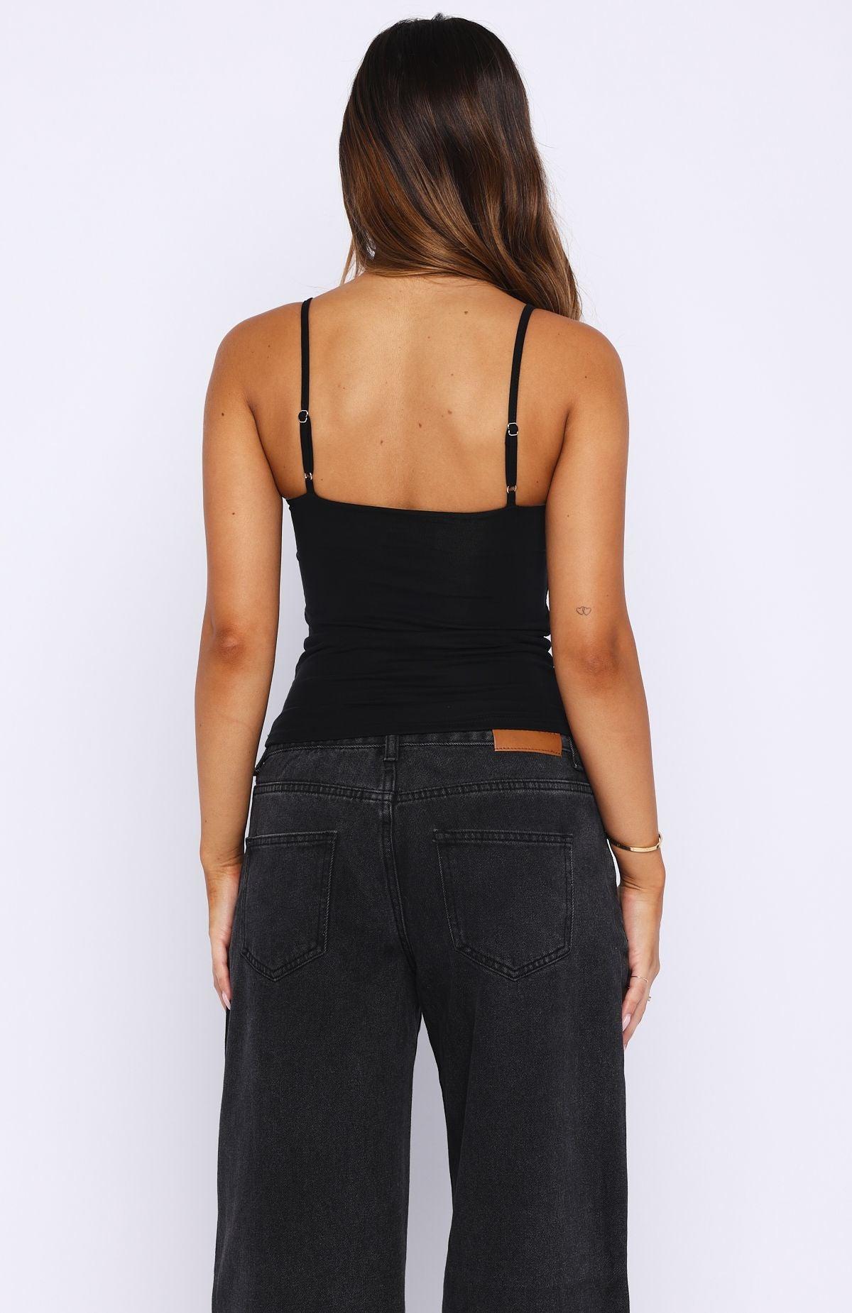 A not-so-basic basic… you won’t be able to live without! The Eiffel Lights Top in Black features thin adjustable straps and a softly curved V-neckline that flatters the décolletage. Built-in padding at the bust adds subtle shape, while the fully lined design keeps things smooth. Crafted in high-stretch fabrication for a snug, flexible fit. Style with low rise jeans and a mini shoulder bag for a look we love!