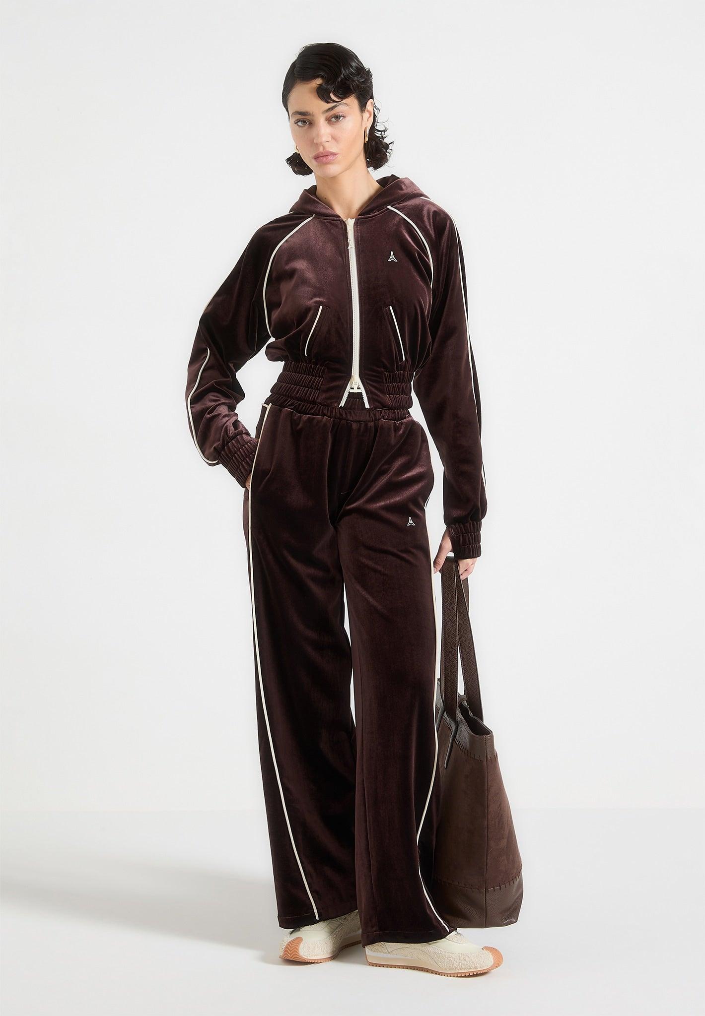 The Eiffel Velour Zip Through Hoodie seamlessly combines comfort and sophistication. Crafted from premium velour fabric, it elevates everyday wear with a refined texture. The contrast piping adds a subtle, elegant detail, while the adjustable waistband ensures a tailored fit. The zip through hoodie silhouette blends functionality with a refined, contemporary aesthetic Crafted from luxurious velour fabric to enhance comfort and visual appeal The contrast piping introduces a subtle detail, elevating the design without overpowering it The deep elasticated waistband ensures a secure and adjustable fit Faux welt pockets maintain the sleek, streamlined appearance Silicone Manière De Voir Eiffel patch on the chest adds a signature detail 95% Polyester, 5% ElastaneAlways check the care label for wash instructions.