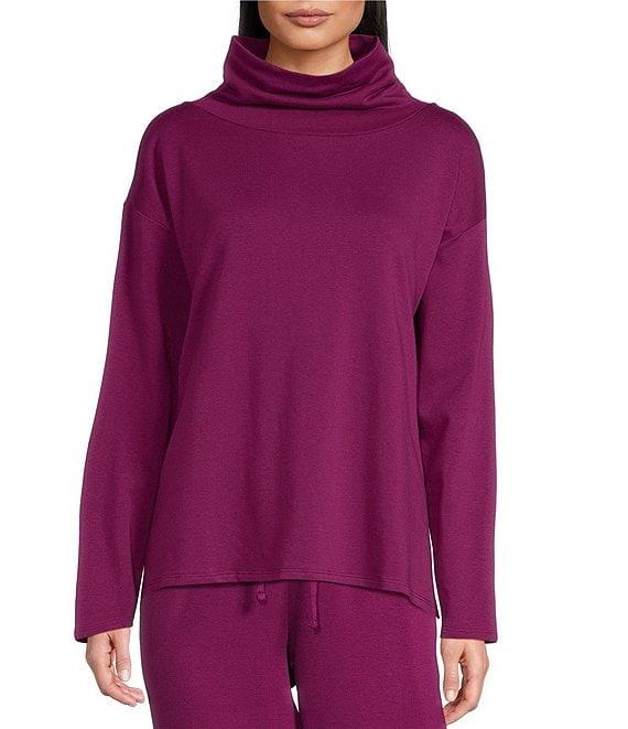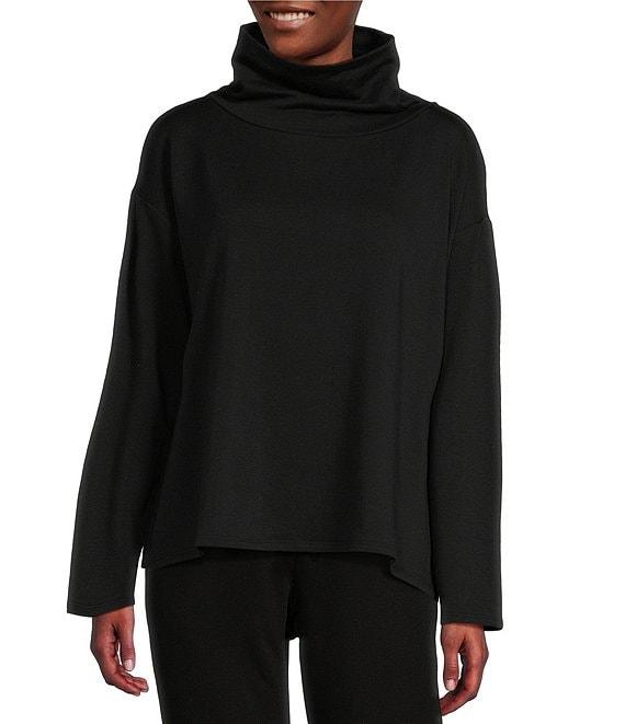 From Eileen Fisher, this top features: Smooth and soft with a brushed fleecy interior for a cozier feel Funnel neckline Long sleeves Dropped shoulders Boxy fit Straight hemline Pullover construction Approx. 30.5" length Tencel™ Lyocell/organic cotton/elastane Machine wash/line dry Made in the USA.