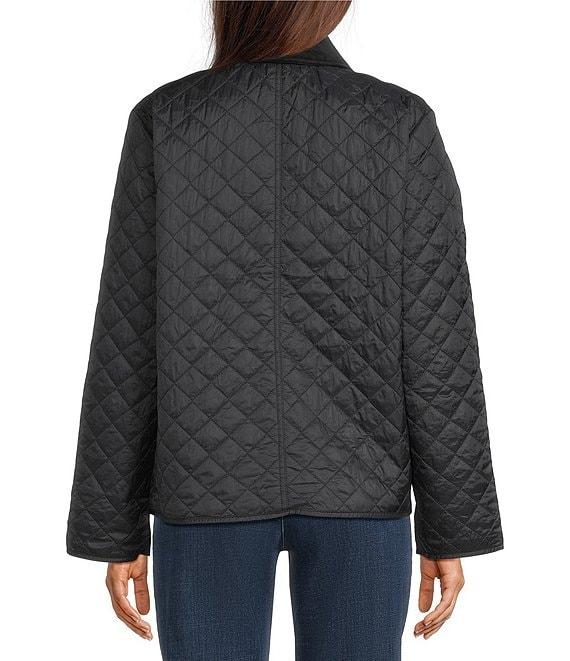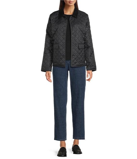 From Eileen Fisher, this jacket features: Recycled nylon woven fabrication Subtle luster detail Point collar neckline Long sleeves Front patch pockets Straight hem Button front closure Approx. 26" length Recycled nylon; filling: PrimaLoft (recycled polyester) Machine wash Imported.