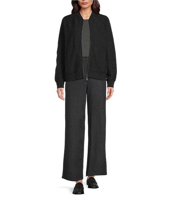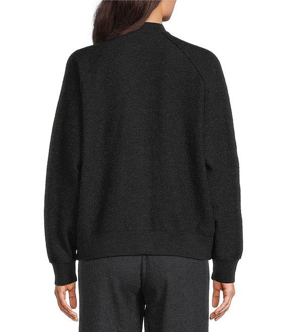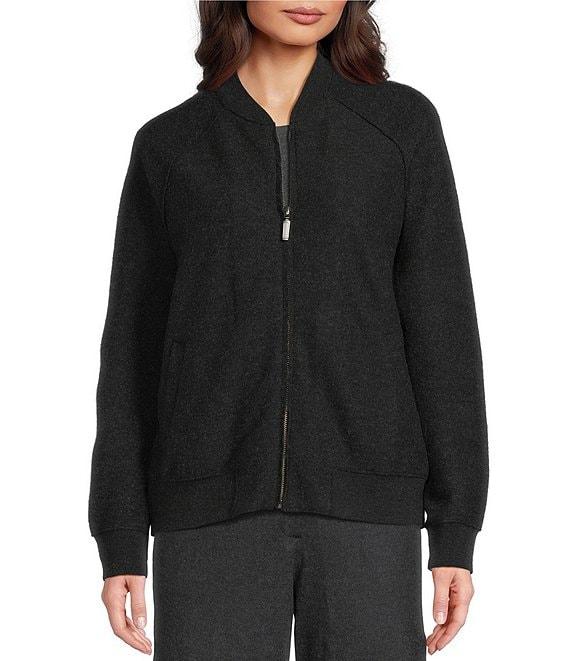 Eileen Fisher Lightweight Boiled Wool Stand Collar Long Sleeve Jacket