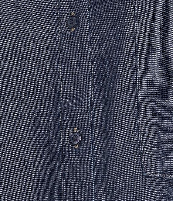 From Eileen Fisher, this shirt features: Lightweight denim fabrication Point collar neckline Long sleeves Front patch pockets Round neck Front button closure Approx. 30" length Organic cotton Machine wash Imported.