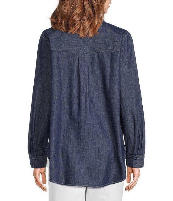 Eileen Fisher Lightweight Organic Cotton Denim Point Collar Long Sleeve Shirt