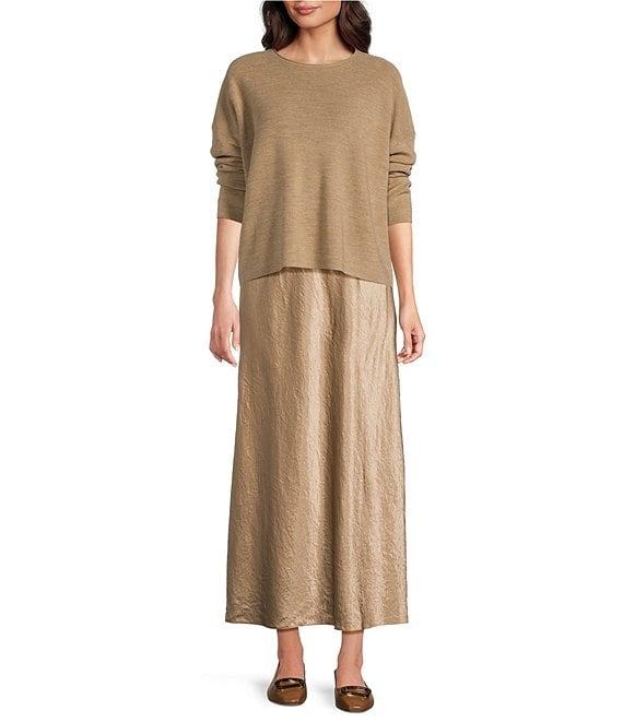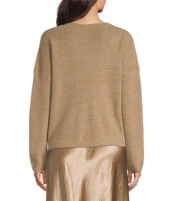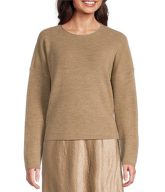 Eileen Fisher Merino Wool Knit Round Neck Long Sleeve Sweater