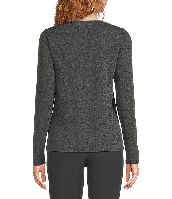 From Eileen Fisher, this top features: Melange sheer knit fabrication Round neckline Long sleeves Straight hem Pullover construction Approx. 24.5" length Organic cotton/tencel lyocell/spandex Machine wash Imported.