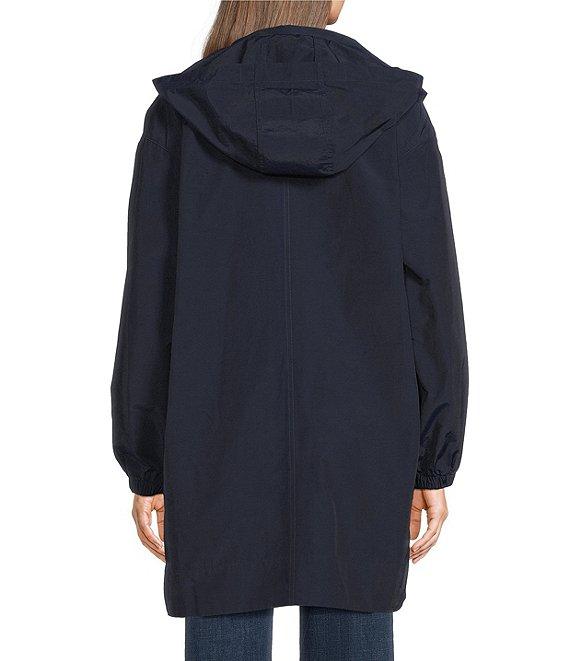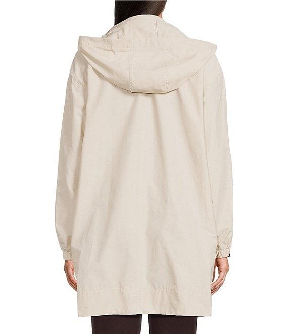 From Eileen Fisher, this coat features: Light cotton nylon fabrication Stand collar neckline Long sleeves with elastic cuffs Hidden hood Side pockets Straight hem Zip front closure Approx. 35" length Organic cotton/recycled nylon Machine wash Imported.
