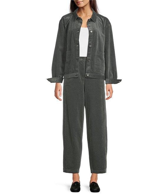 Eileen Fisher Organic Cotton Blend Stretch Corduroy Point Collar Long Sleeve Jacket