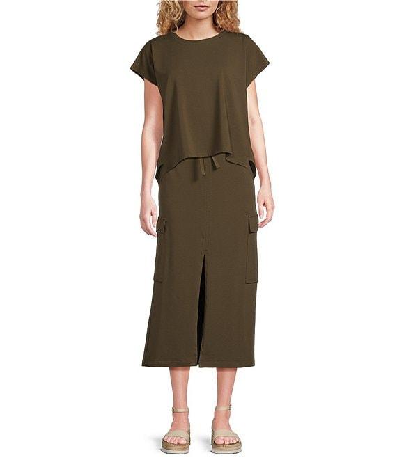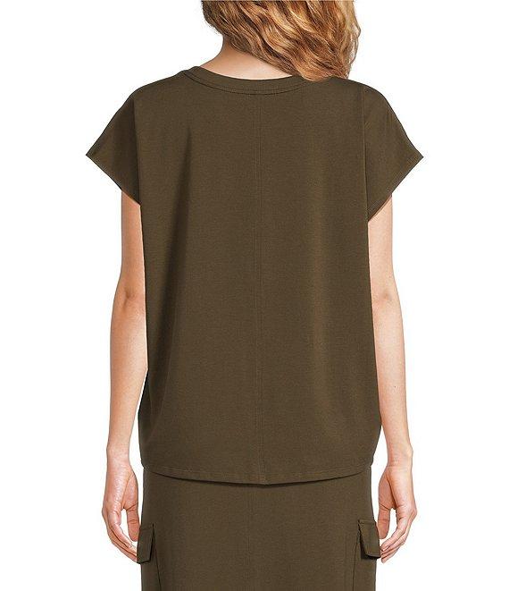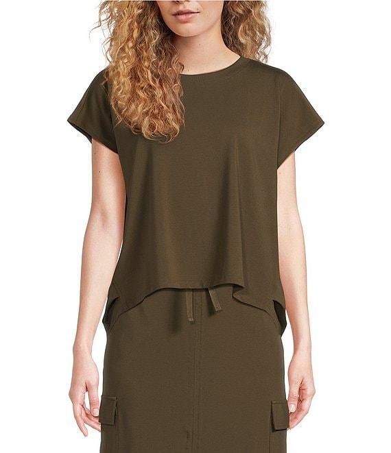 Eileen Fisher Organic Cotton Blend Stretch Jersey Crew Neck Cap Sleeve Coordinating Shirt
