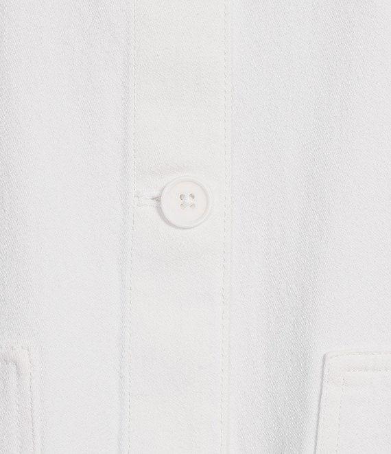 From Eileen Fisher, this jacket features: Garment dyed woven fabrication Classic point collar neckline Long sleeves Front patch pockets Straight hem Button front closure Approx. 32" length Organic cotton Machine wash Imported.