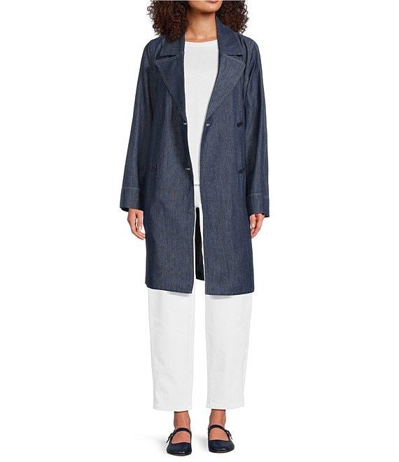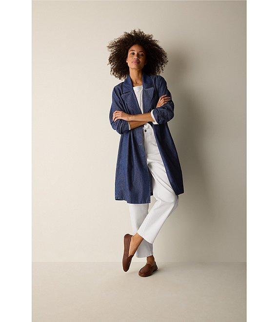 Eileen Fisher Organic Cotton Denim Notch Lapel Long Sleeve Trench Coat
