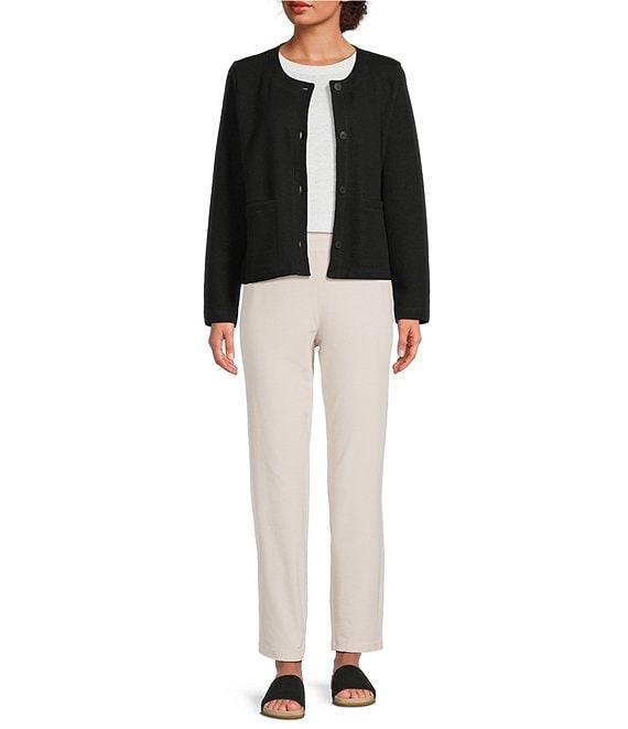 Eileen Fisher Organic Cotton Double Knit Round Neck Long Sleeve Short Jacket