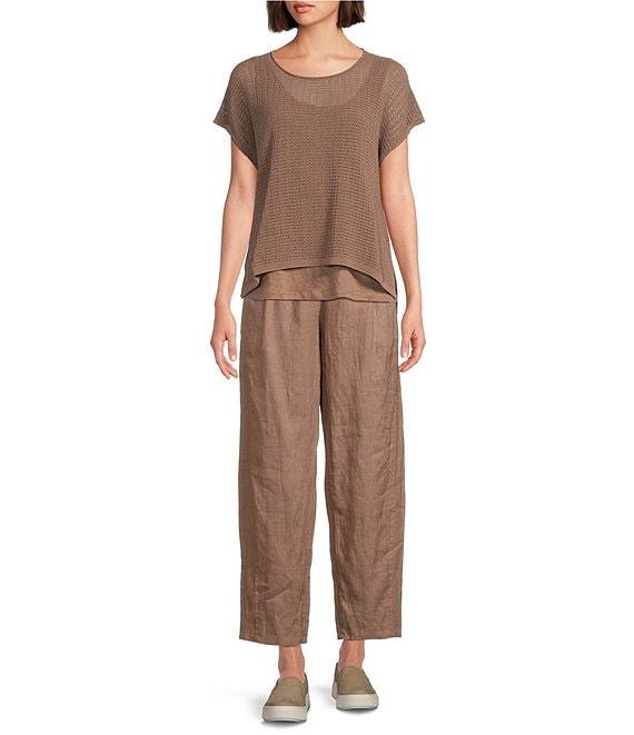 Eileen Fisher Organic Cotton Knit Cord Crew Neck Cap Sleeve Top