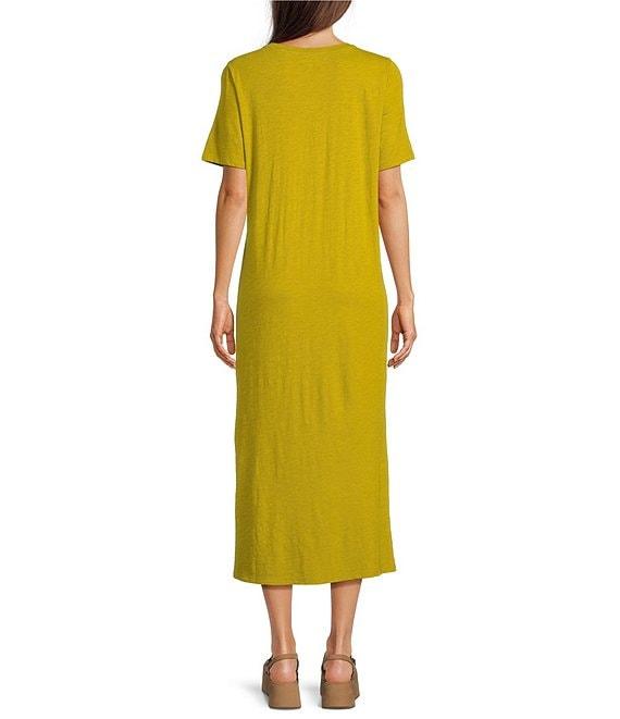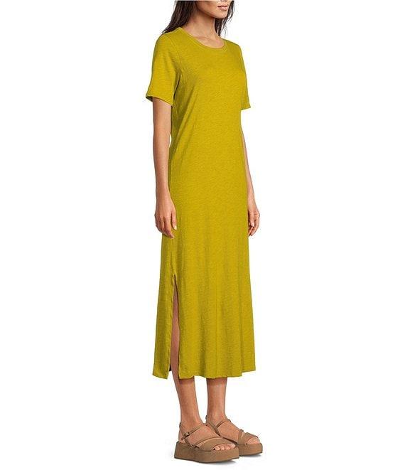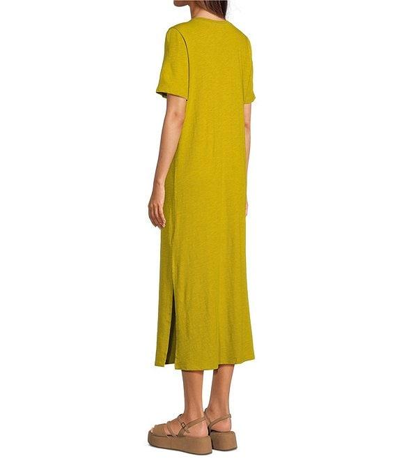 Eileen Fisher Organic Cotton Slub Jersey Crew Neck Short Sleeve Midi Dress