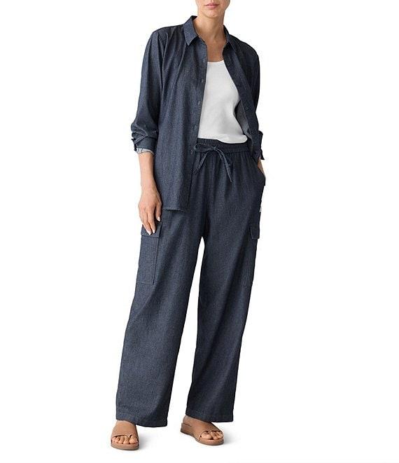 From Eileen Fisher, this pant features: Organic cotton twill fabrication Cargo silhouette Elastic tie waistband Side seam pockets Side cargo pockets Pull-on construction Approx. 11.75" front rise; 18" back rise; 30" inseam Organic cotton Machine wash Imported.