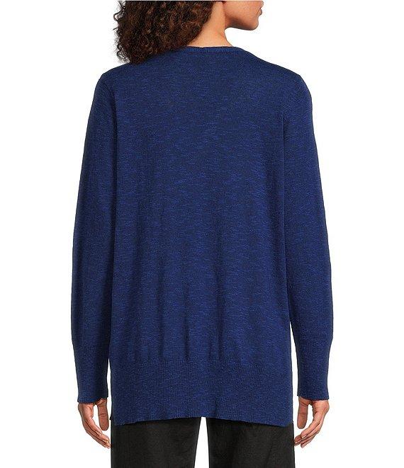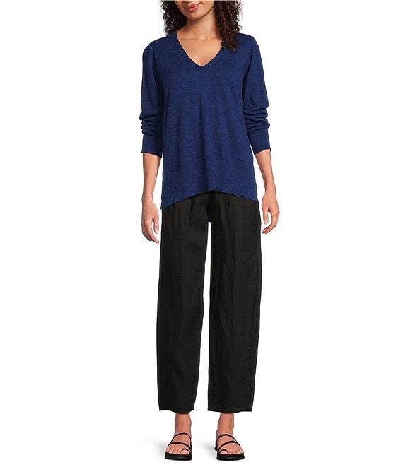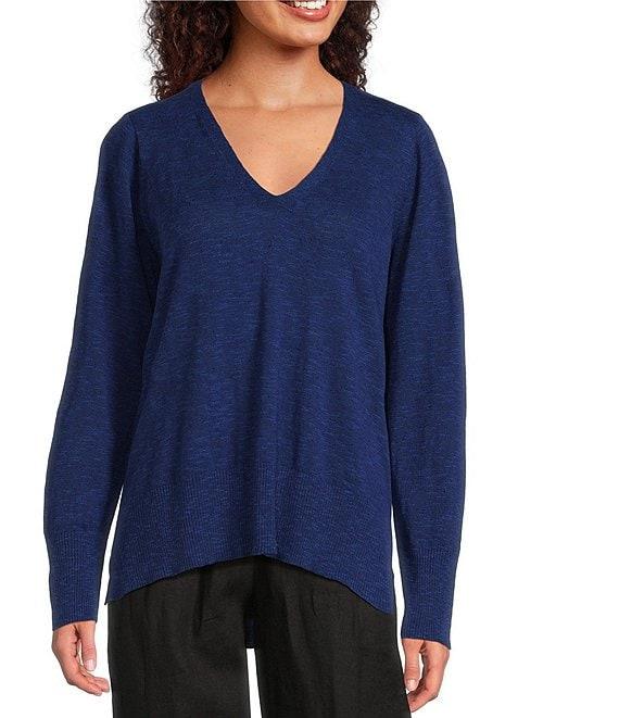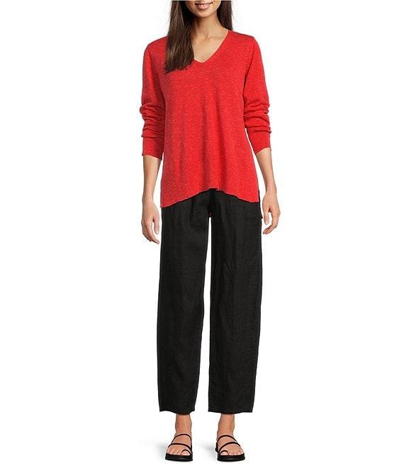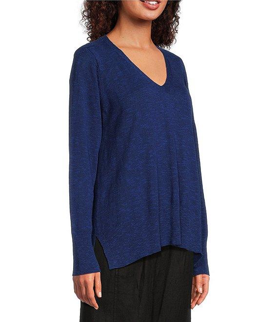 From Eileen Fisher, this sweater features: Organic linen cotton blend knit fabrication V-neckline Long sleeves Ribbed trim Straight hem Pullover construction Approx. 26.5" length Organic linen/organic cotton Machine wash Imported.