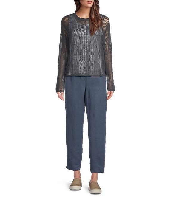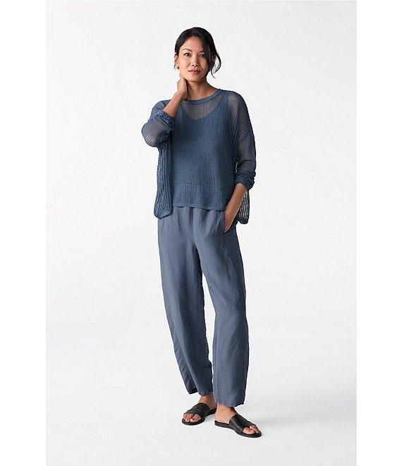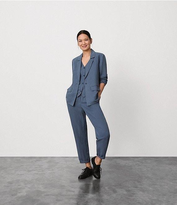 Eileen Fisher Organic Linen Silk Twill Pleated Ankle Pants