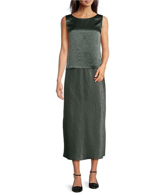 Eileen Fisher Petite Textured Satin Elastic Waist Bias Maxi Skirt