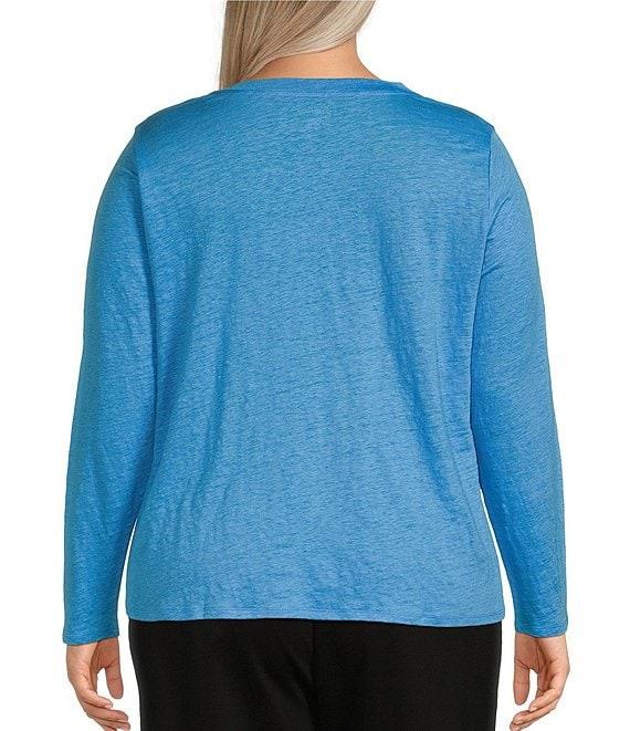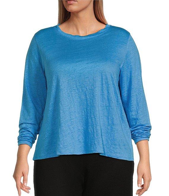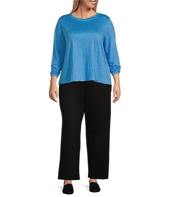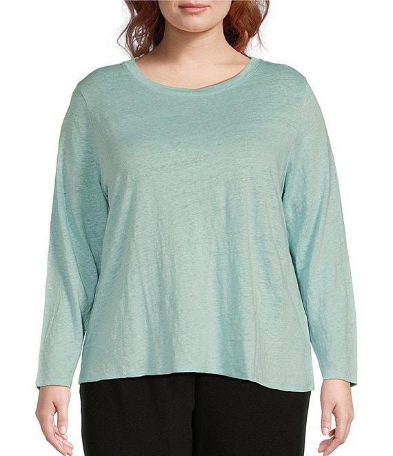 Eileen Fisher Plus Linen Jersey Round Neck Long Sleeve Top