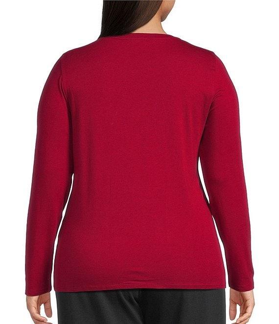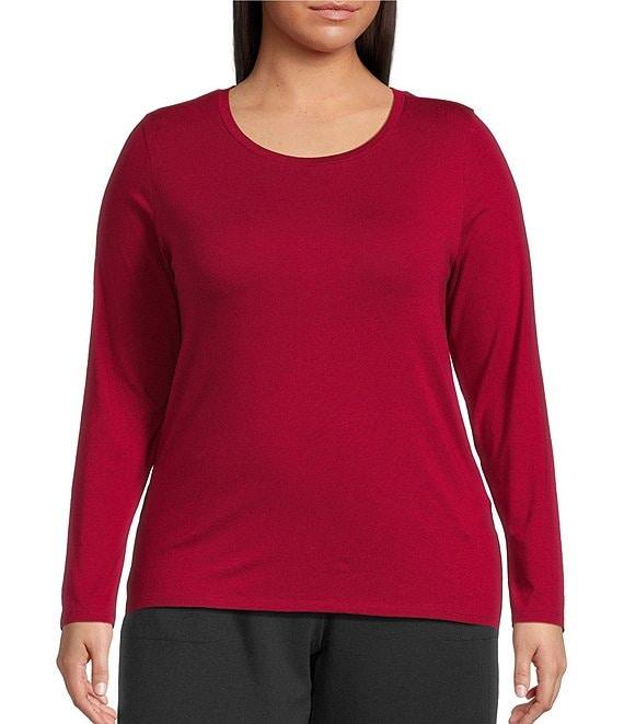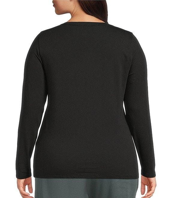 Eileen Fisher Plus Sheer Cotton Blend Knit Round Neck Long Sleeve Tee
