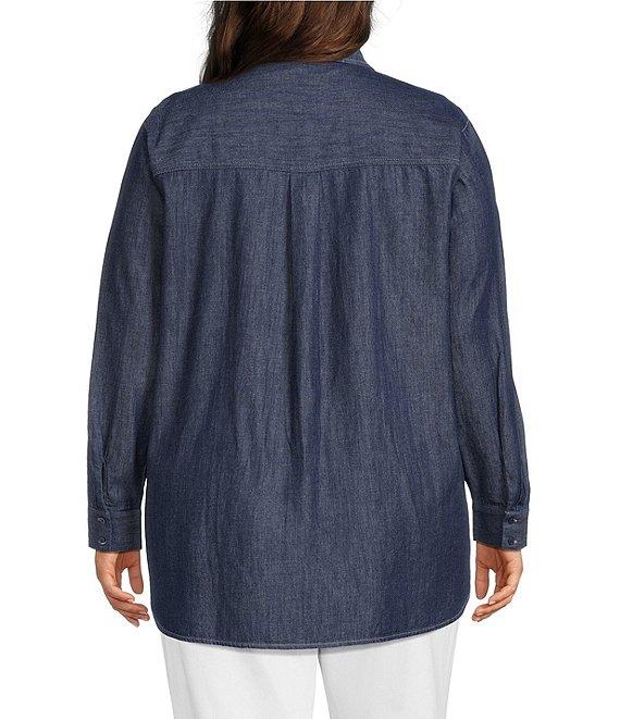 Eileen Fisher Plus Size Lightweight Organic Cotton Denim Point Collar Long Sleeve Shirt