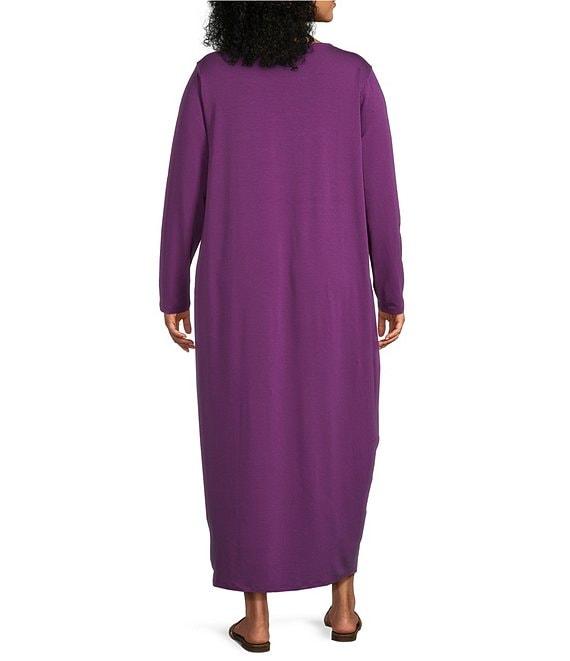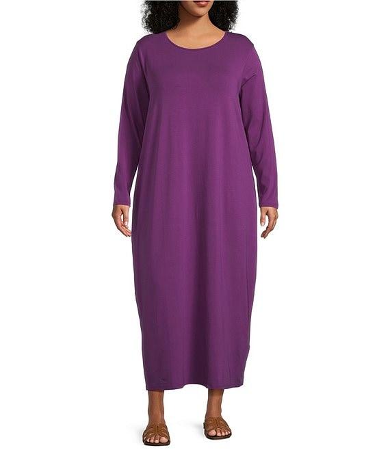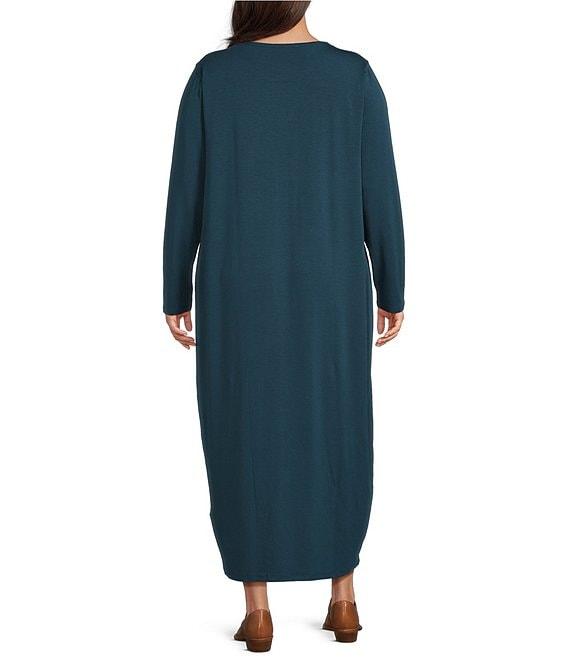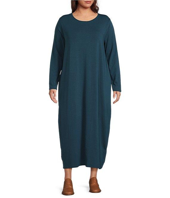 Eileen Fisher Plus Size Stretch Jersey Knit Round Neck Long Sleeve Oval Midi Dress