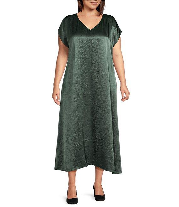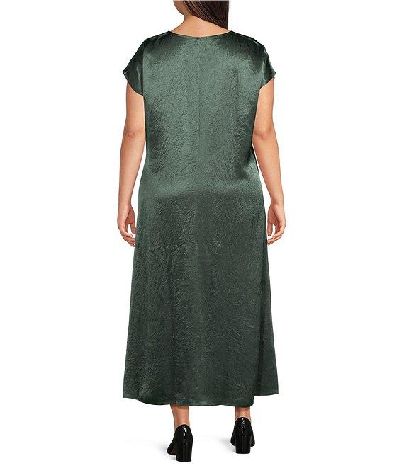 Eileen Fisher Plus Size Textured Satin V-Neck Cap Sleeve Maxi Dress