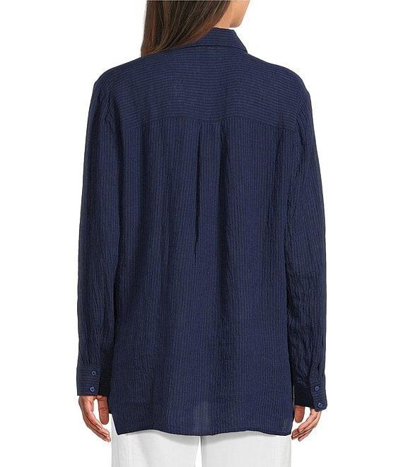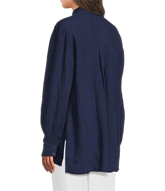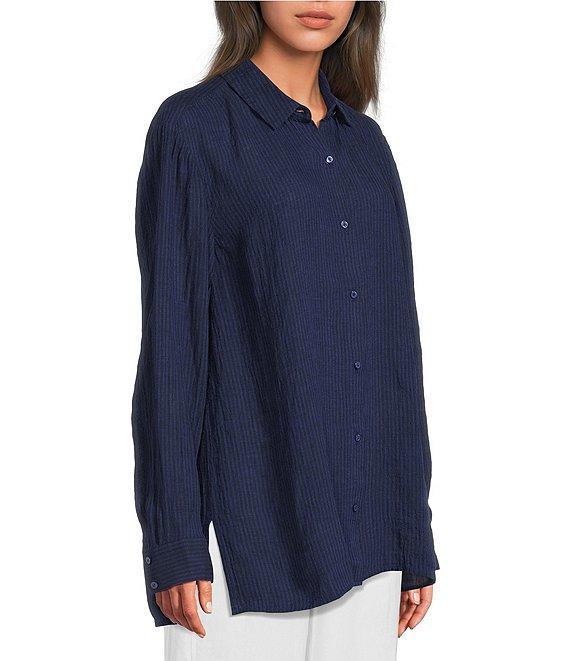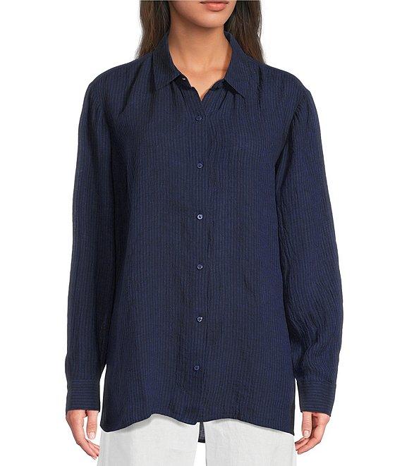 From Eileen Fisher, this top features: Puckered organic linen fabrication Point collar neckline Long sleeves Straight hem Button front closure Approx. 29" length Organic linen Machine wash Imported.