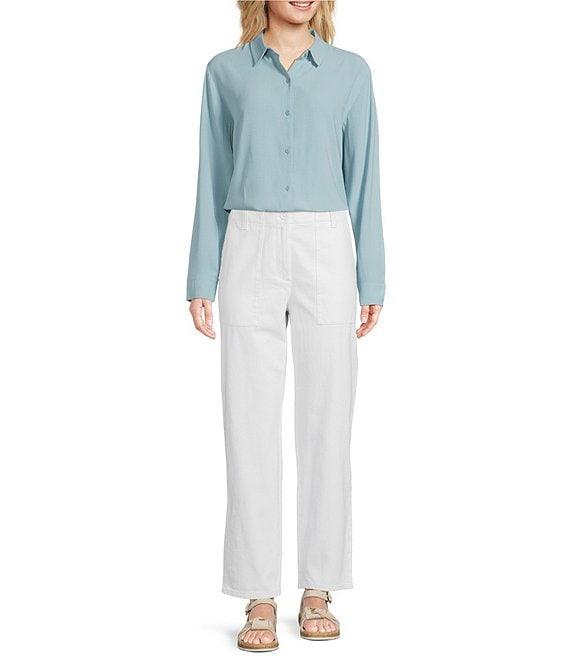 Eileen Fisher Silk Georgette Crepe Point Collar Long Sleeve Button Front Shirt