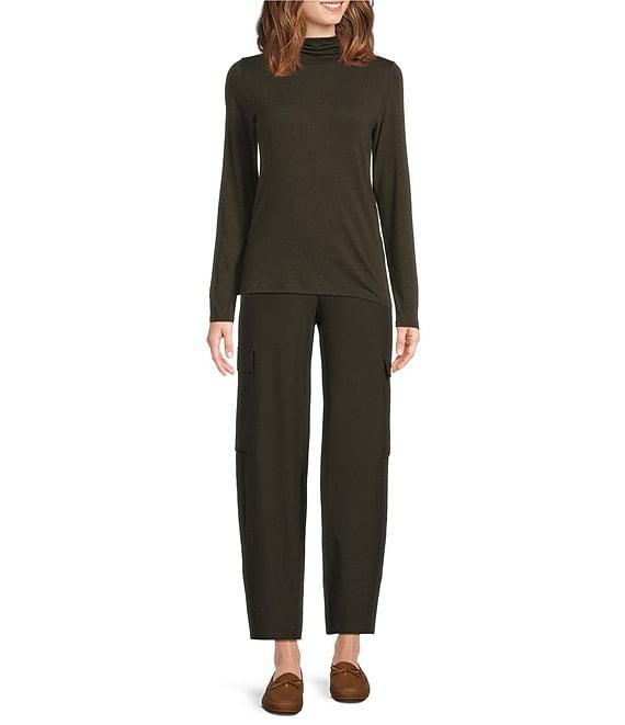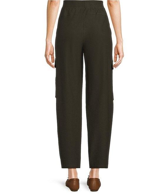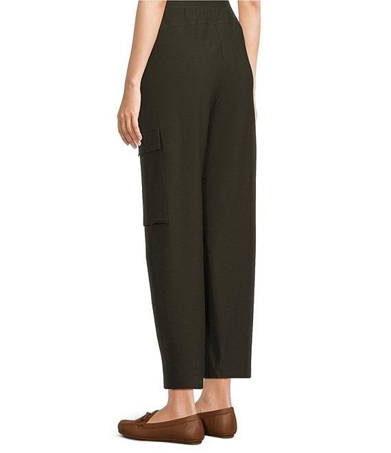 From Eileen Fisher, this pant features: Stretch crepe fabrication Elastic waistband Lantern silhouette Cargo pockets Side seam pockets Pull-on construction Approx. 27.5" inseam; 11" front rise; 16.5" back rise Viscose/polyamide/elastane Machine wash Imported.