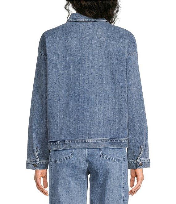 From Eileen Fisher, this jacket features: Stretch denim fabrication Boxy silhouette Point collar neckline Long sleeves Front pockets Straight hem Button front closure Approx. 23" length Organic cotton/recycled cotton/elastane Machine wash Imported.