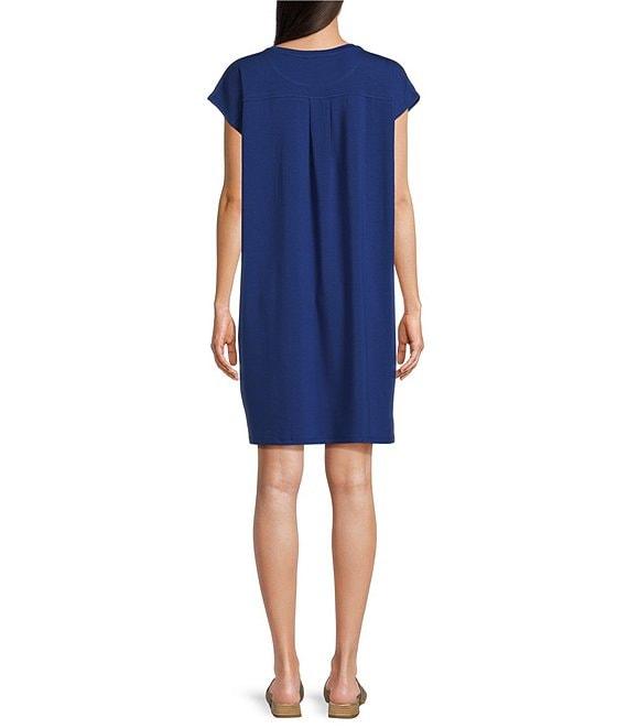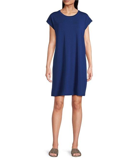 Eileen Fisher Stretch Jersey Knit Crew Neck Cap Sleeve Boxy Dress