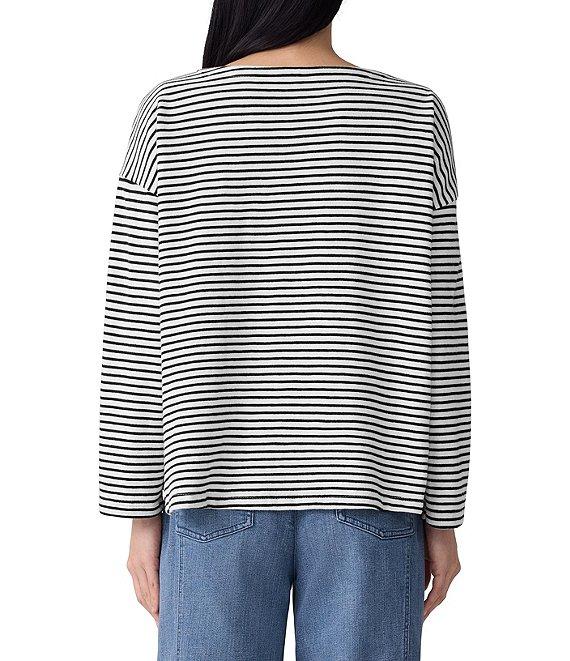 Eileen Fisher Stripe Organic Cotton Slub Knit Boat Neck Long Sleeve Top