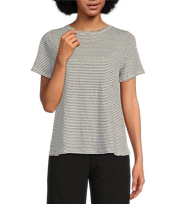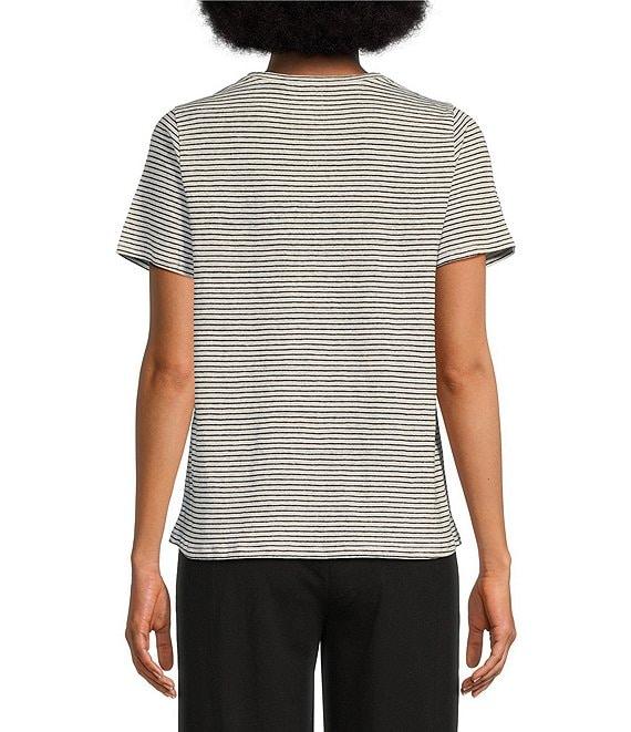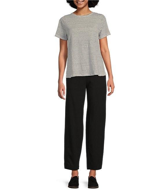 Eileen Fisher Striped Organic Linen Jersey Crew Neck Short Sleeve Tee