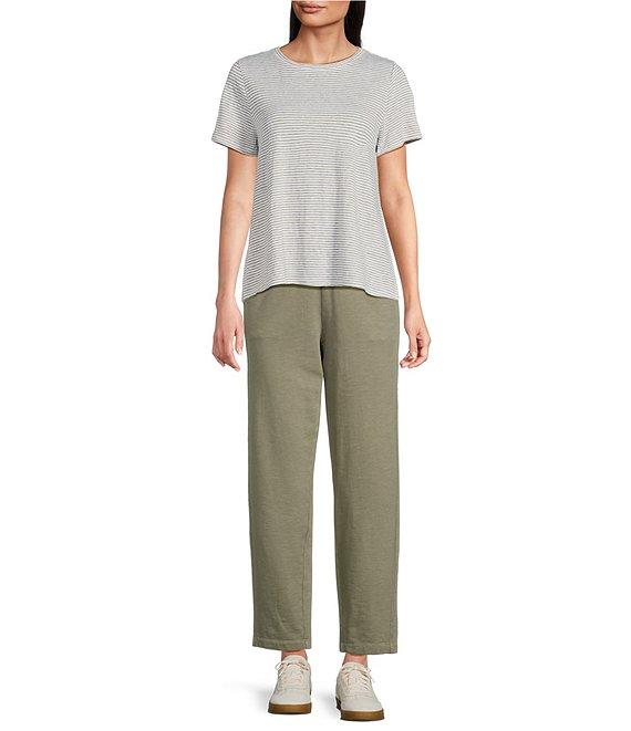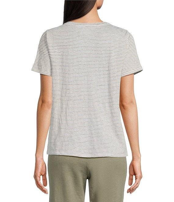 Eileen Fisher Striped Organic Linen Jersey Round Neck Short Sleeve Top