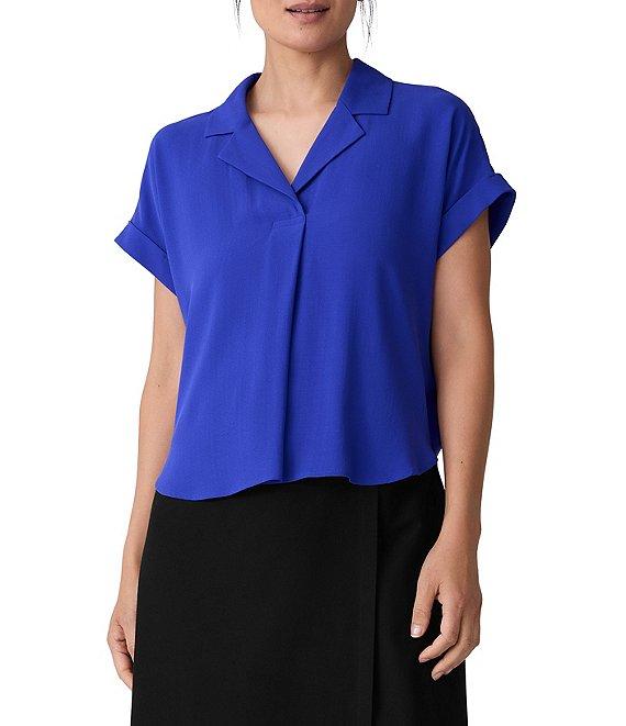 Eileen Fisher Textured Matte Jersey Knit Notch Collar Cap Sleeve Top