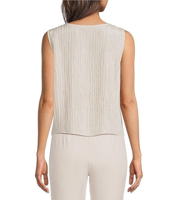 Eileen Fisher Textured Silk Jacquard Boat Neck Sleeveless Top