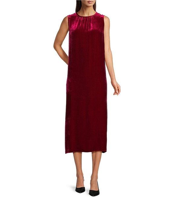Eileen Fisher Velvet Crew Neck Sleeveless Midi Dress