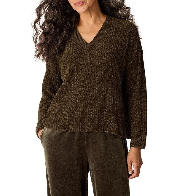 Eileen Fisher Velvety Ribbed Knit V-Neck Long Sleeve Sweater