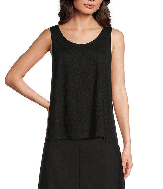 Eileen Fisher Texture Organic Linen Knit Scoop Neck Sleeveless Tank