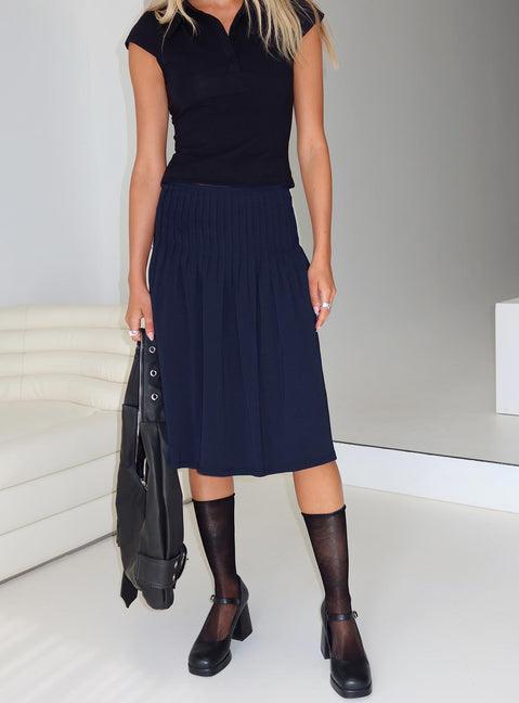 Elaila Pleat Midi Skirt Navy
