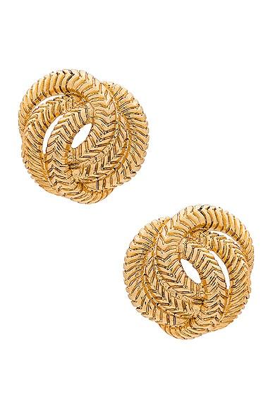 Jennifer Behr Elaina Stud Earrings in Metallic Gold. Jennifer Behr Elaina Stud Earrings in Metallic Gold. 18k gold-plated brass. Made in USA. Post-back closure. Measures approx 1.25 W x 1 H. JEHR-WL240. 111RA46. Fascinated by the rich and powerful history of headpieces, which are signifiers of royalty and ceremony, Jennifer Behr is inspired by the talismanic power of a good headpiece, bringing you the most luxurious pieces on the market today. Each season, Jennifer artfully incorporates a range of materials such as sparkling Swarovski crystals with intricate metalwork, creating unique heirloom-quality designs, carefully constructed by hand in New York City.