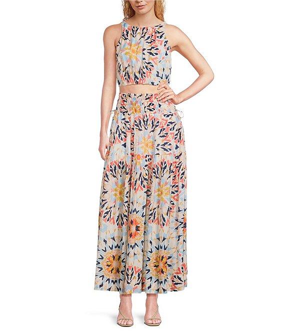 ELAN Coordinating Kaleidoscope Smock Waist Maxi Skirt