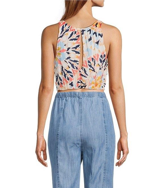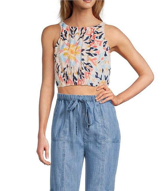ELAN Kaleidoscope Elastic Hem Crop Halter Top