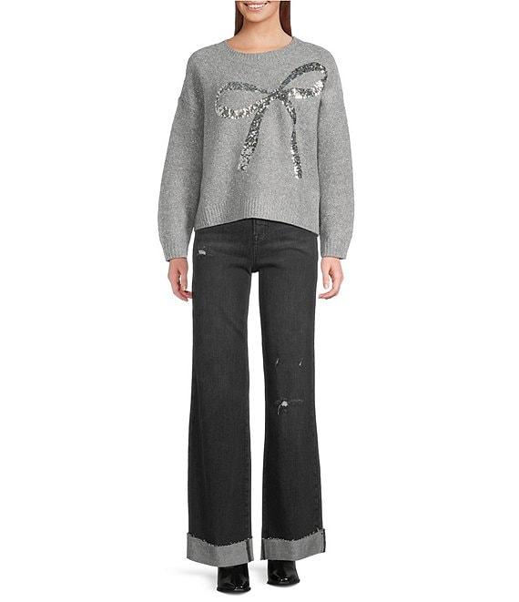 ELAN Sequin Bow Crew Neck Long Sleeve Sweater